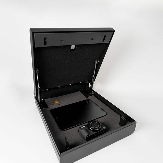 Find peace of mind with the in-car safe that locks & disguises your valuables + opens in seconds with your fingerprint.